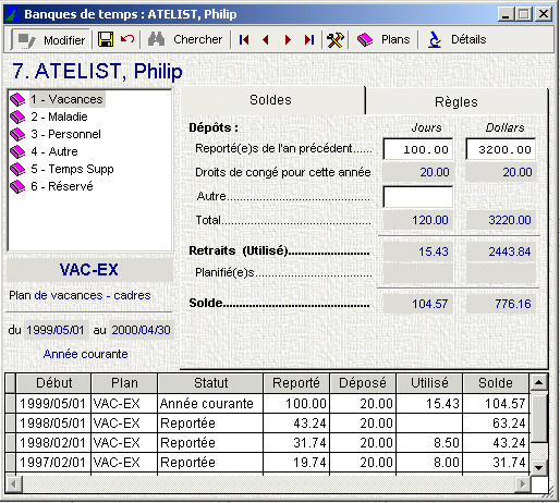 Menu de gauche > Avantages > Banques de temps