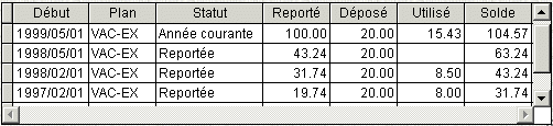 Au départ, cette fenêtre affiche l'état actuel du plan, et cet enregistrement se trouve sur la dernière ligne de la fenêtre de visualisation. Pour visualiser les enregistrements précédents, utilisez les flèches du clavier ou la souris pour aller vers le haut ou vers le bas.