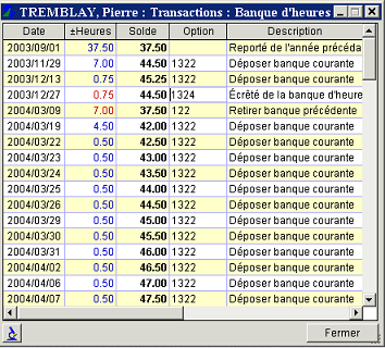 Cliquez sur pour afficher l'historique des transactions de la banque de temps ;