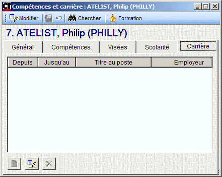 Cet onglet reprend le détail des fonctions job occupées par l'employé (date, titre, employeur).