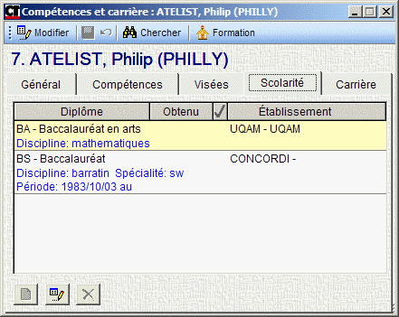 Cet onglet comprend les diplômes et les détails de la scolarité de la personne.