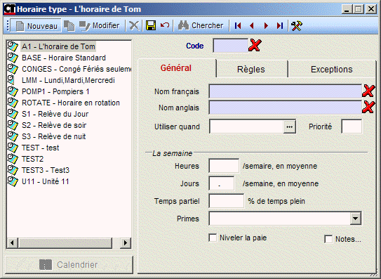 Pour accéder à la fenêtre Planif. standard, sélectionnez Données | Planif. | Planif. standard dans la barre de menu ou cliquez sur l'icône dans le volet de navigation Administration.