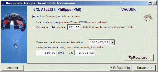 Cliquez sur pour afficher la calculatrice. Vous pouvez modifier les heures et/ou les montants que l'employé perd ou ce qui reste à la banque.