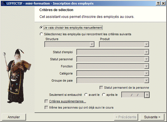 le menu principal Outils | Assistants | Cours : Inscrire les employés sélectionnés...