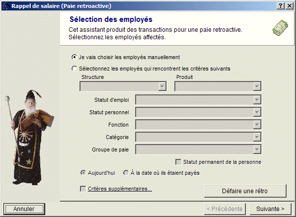 le menu principal Outils | Assistants | Paiements rétroactifs...