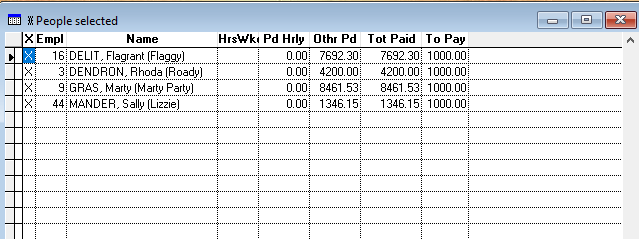 - Date originellement payée : pour spécifier que l'employé doit répondre aux critères stipulés à la date à laquelle les montants lui ont été payés. Critères supplémentaires : Vous pouvez programmer des critères supplémentaires à l'aide du générateur d'expressions. Cliquez sur si vous souhaitez annuler un rétroactif antérieur. Cliquez sur l'utilisateur accède à la liste des personnes sélectionnées en fonction des critères définis.