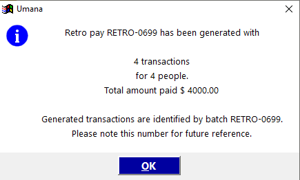 Le système indiquera le nombre de transactions qu'il créera et le total rétro $$.