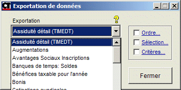 Le menu déroulant vous permet de sélectionner l'exportation souhaitée.