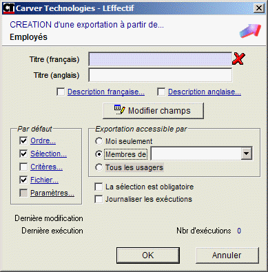 Création ou modification d'une exportation