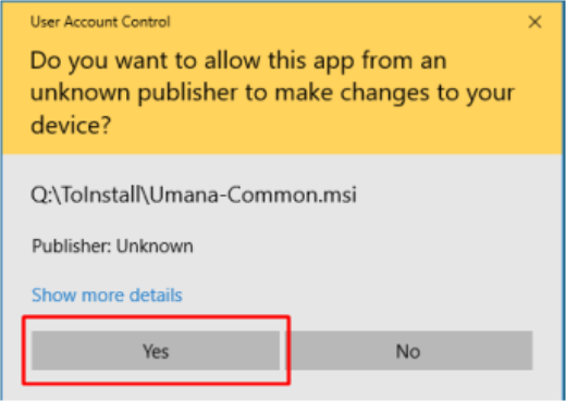 Lorsque l'ancienne version a été désinstallée, recommencez l'installation d'Umana-Common.msi.