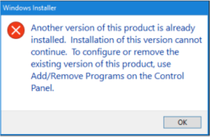 Si vous obtenez le message Une autre version déjà installée, supprimez l'ancienne version comme dans l'étape 1 ci-dessus et réessayez l'installation.