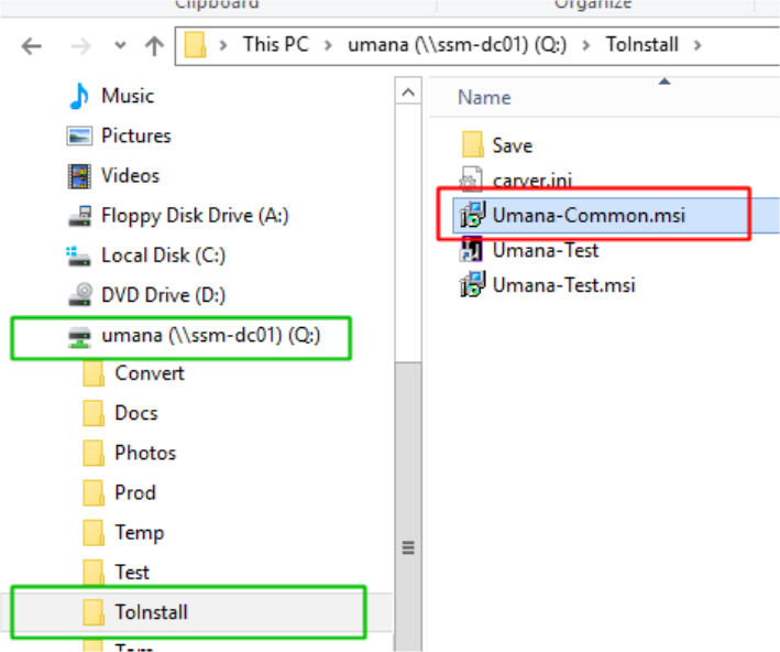 - Trouvez le fichier : UMANA-COMMON.MSI Il peut se trouver à la racine d'Umana. Il peut se trouver dans un autre dossier comme ToInstall