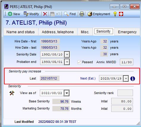 Vous pouvez consulter ces informations dans la fenêtre PERS, onglet ancienneté.