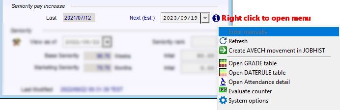 - Le dernier avancement d'échelon (à partir de JOBHIST), dans le champ PERS.E_LSTAVECH