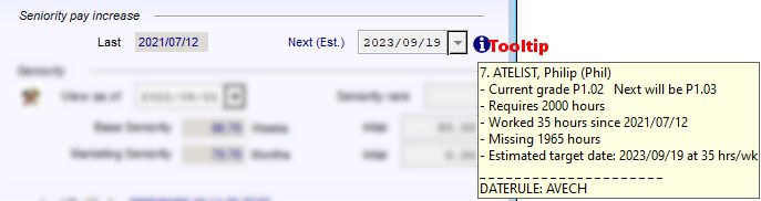 , vous obtiendrez une info-bulle sur son prochain échelon et le nombre d'heures qu'il lui reste à faire pour l'atteindre. Voici un exemple :