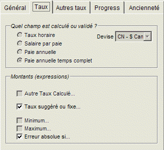 Onglet Taux